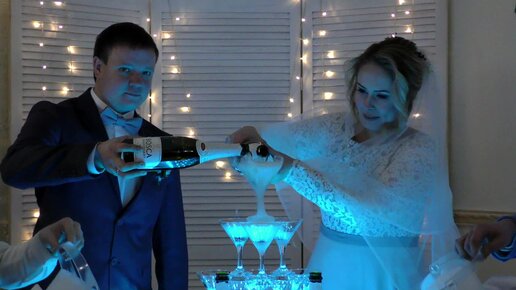 Молодожены разливают шампанское для гостей