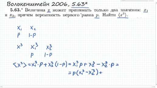 Теория вероятностей: величина х может принимать только два значения: х1 и х2: Волькенштейн 5.63*