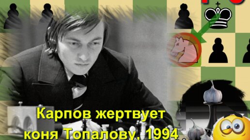 Карпов красиво отдает коня и выигрывает позицию, да и материал у Топалова (Испания, 1994, 1-0) - играю до долгого мата