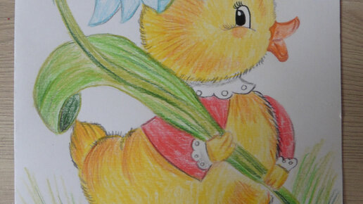 Как нарисовать утенка с цветком - рисунок карандашами