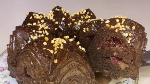 Супер влажный шоколадный кекс с вишнёвой начинкой.
