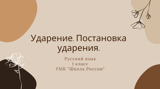 Ударение. Постановка ударения. Урок русского языка в 1 классе.