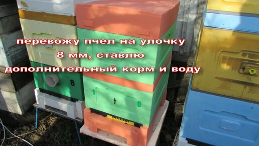перевожу пчел на улочку 8 мм, ставлю в улей, дополнительный корм и воду для весеннего развития при похолодании