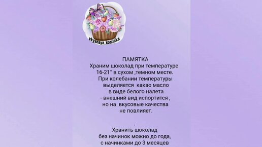 Хранение шоколада