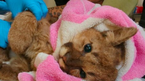 Когда спасатели нашли пуму Розочку, она весила всего 4 килограмма из положенных 13. Посмотрите, как малышка идет на поправку