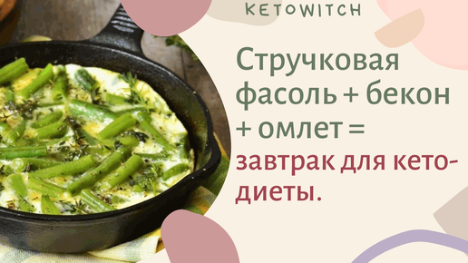 Стручковая фасоль с беконом и омлетом, на завтрак для кето-диеты.
