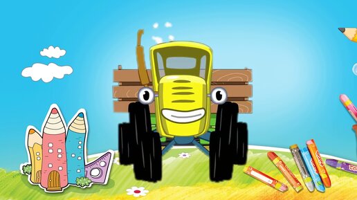 Мультик Синий Трактор. Рисуем жёлтого трактора. Мультики для детей.