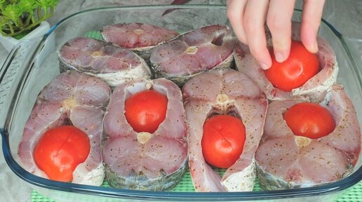 Мариную рыбу белый амур с помидорами, зеленью и приправами. Готовлю в духовке и подаю с соусом (рецепт приготовления)