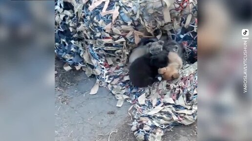 Распространите: щенки охраняют маму-кошку и её новорождённых котят