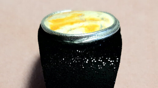 Браслет из кожи с кабашоном из пейзажного янтаря.