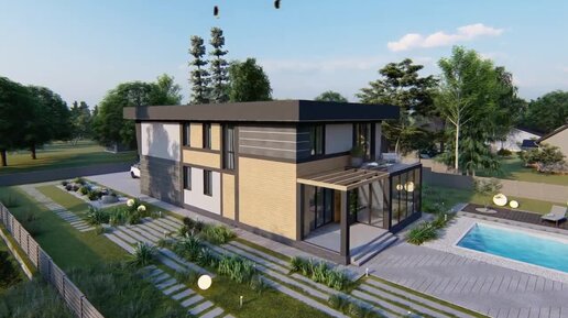 Проект двухэтажного дома 322 м2 с гаражом, кабинетом, балконом и террасой - DTE124