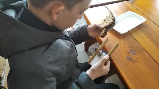 Делаем с мальчиком динозаврика резаком для пенопласта