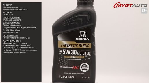 Моторное масло Honda 5W-30 SN ILSAC GF-5 08798 9034 #ANTON_MYGT