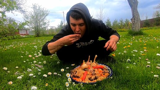16 литров плова в казане в деревне.