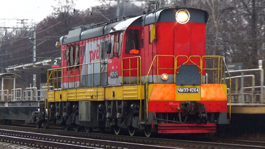 Тепловоз ЧМЭ3-4264 с вывозным грузовым поездом, станция Храпуново