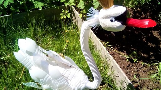 Как сделать лебедя для сада из пластиковых бутылок. Декор садового участка.
