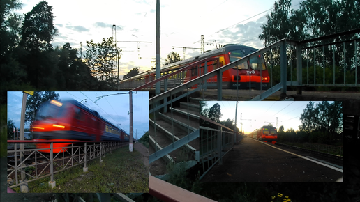 Вечерние прибытие и отправление пригородного электропоезда ЭД4М
