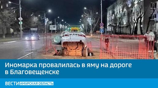 Иномарка провалилась в яму на дороге в Благовещенске
