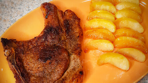 Жареная свинина на сковороде с медовыми яблоками и кофейным соусом. Великолепное сочетание и очень вкусно!