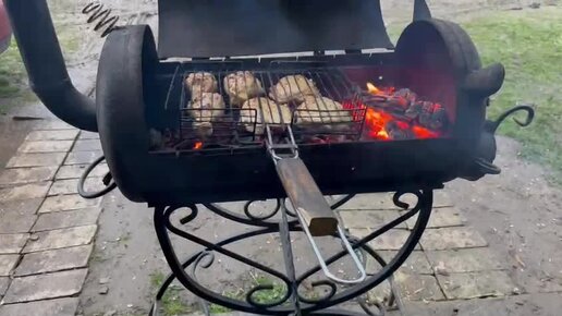 Наш мангал-коптильня. Жарим шашлычок.