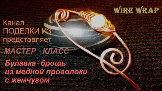Булавка-брошь из медной проволоки с жемчугом Wire wrap