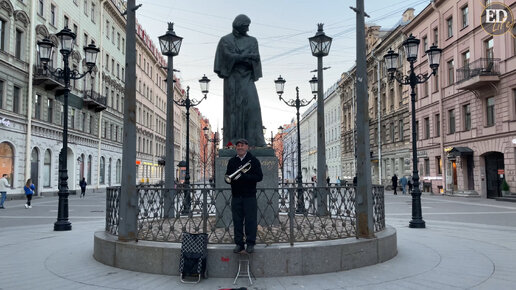 Трубач Дядя Миша, один из старейших музыкантов Петербурга, сыграл несколько популярных композиций в центре Северной столицы