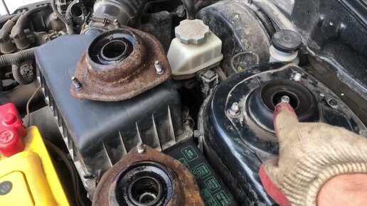 Как поменять передние опорники и снять стойки в сборе на автомобиле Hyundai Accent