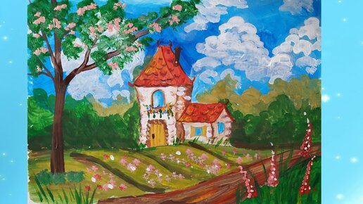Как нарисовать летний сказочный пейзаж пошагово для начинающих.