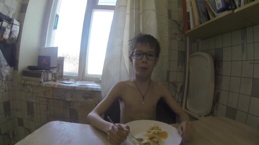 Юный блогер жарит глазунью ))