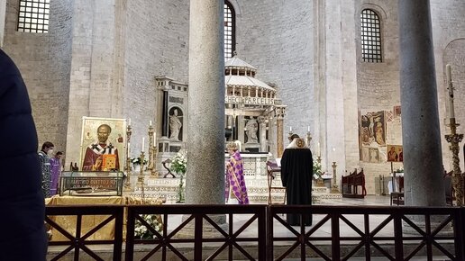 Православная служба у мощей Святого Николая на юге Италии в Чистый Четверг