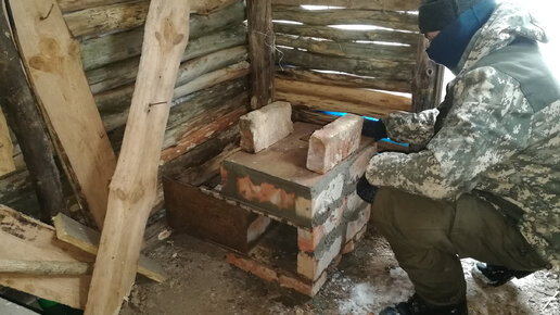 землянка в лесу, выкладываю печь