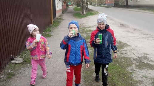 Каждый со своим напитком или дружный отряд шагает домой после трудового дня: школы, детского сада и занятий.