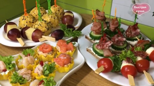 Быстрые закуски для фуршета. Канапе на шпажках.