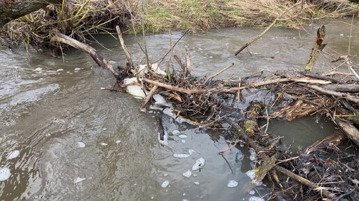Овчарка нашла хатку бобров. Весенняя речка