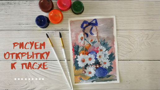 Как нарисовать ПАСХАЛЬНУЮ КОРЗИНКУ. Открытка на пасху гуашью.