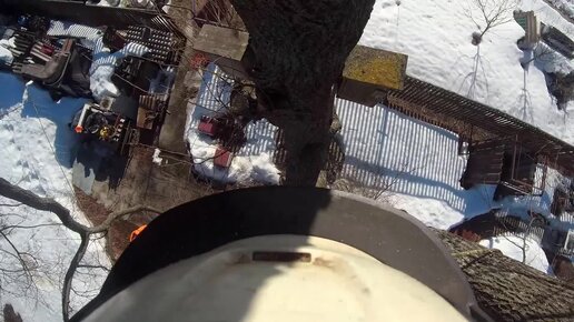 Спил дерева частями от первого лица