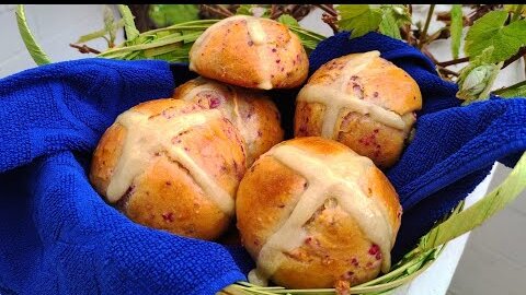 Пасхальные Крестовые булочки с КЛЮКВОЙ. Hot Cross Buns Recipe Пасхальный кулич выпечка