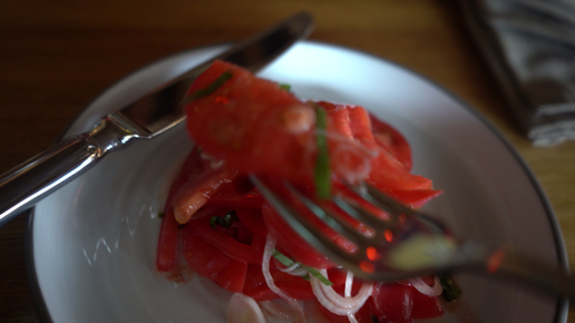 Дегустация салата "Айчичук" и картофеля с думбой в ресторане "Чайхона №1", в Москве, на ул. Люблинской