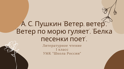 А. С. Пушкин "Ветер, ветер", "Ветер по морю гуляет", "Белка песенки поет". Урок литературного чтения в 1 классе.