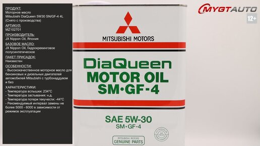 Моторное масло Mitsubishi DiaQueen 5W-30 SN/GF-4 4L MZ102701 #ANTON_MYGT