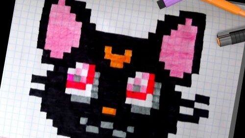 Рисуем по клеточкам кошку из мульт сериала Сейлор Мун