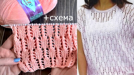 Ажурный, простой узор спицами для туник, маечек, топов и т.д. Мастер - класс