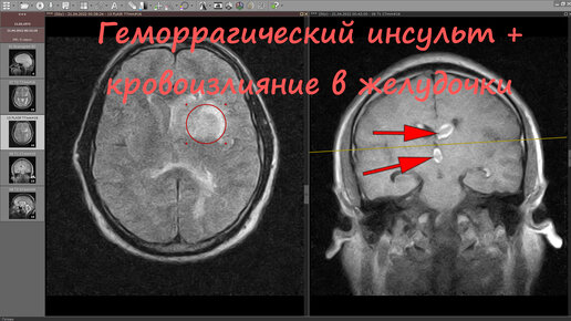 Геморрагический инсульт + кровоизлияние в желудочки головного мозга