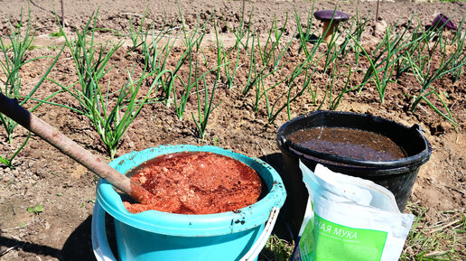 Дедушка выливал на грядку с луком и чесноком такую жидкость. Головки росли с кулак. Подкармливаем грядочки кровяной мукой.