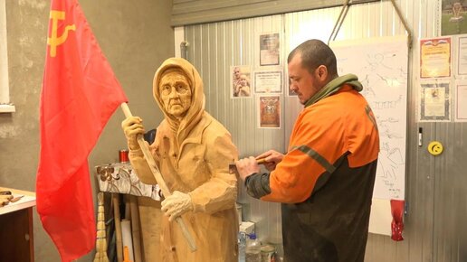 Воронежец вырезал скульптуру украинской бабушки из дерева