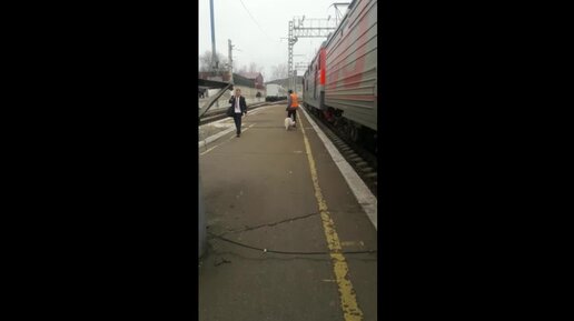 Малыш едет в поезде к своей маме и вышел погулять на станции.