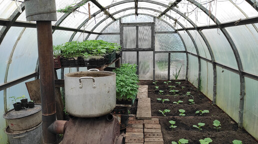 Показываю, что у меня растет 22 апреля в самодельной поликарбонатной теплице.