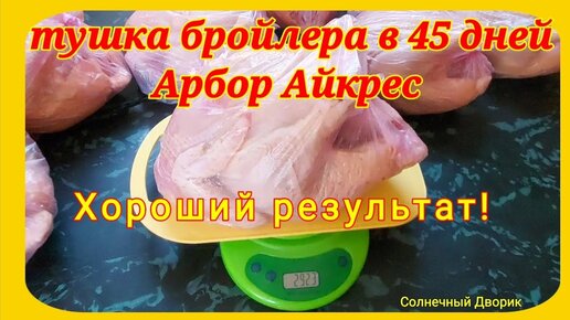 Бройлеры. Вид, вес тушки бройлера Арбор Айкрес в 45 дней. Завершающий день забоя(2021).