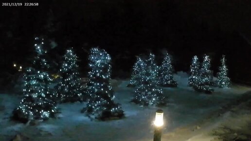 украшаем голубые ели гирляндой перед новым годом