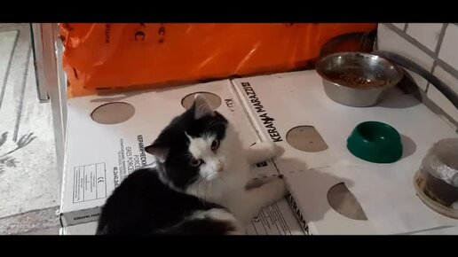 Как вкусно кушает кот Коша угощение от Сергея и Татьяны. Спасибо!.mp4
